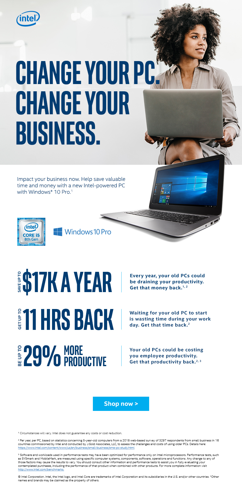 Copyright © 2018 Intel Corporation. All rights reserved. Intel, the Intel logo, Intel Atom, Intel Core, Intel. Experience What's Inside, the Intel. Experience What's Inside logo, Intel Inside, the Intel Inside logo, Intel Optane, Intel vPro, and Xeon are trademarks of Intel Corporation or its subsidiaries in the U.S. and/or other countries.